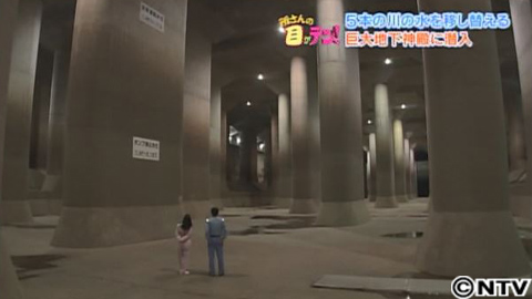 そこで作られた施設が、首都圏外郭放水路。この地域に洪水を引き起こしていた5本の川と地下でつながっている地下神殿。