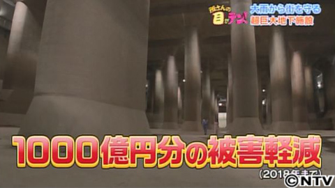 その効果は著しく、例えば2000年の台風ではこのように水没してしまった街の交差点が、この施設が一部稼働を始めた後にきた同程度の台風では全く水没しなくなりました。その被害軽減効果は現時点で1000億円と試算されています。