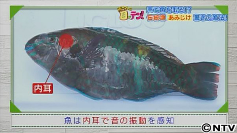 でも一体、なぜ魚は網に追い込まれたのでしょうか。実は、魚には音を感知する器官があるんです。魚の頭の中には、人間の耳のような働きをする内耳(ないじ)と呼ばれる部分があり、そこで音を感じ、認識しているのです。