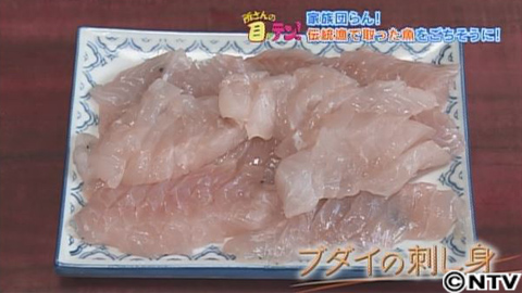 練習のあとは、福地さんの自宅で、夕食をごちそうになります。自宅には、奥さんとお孫さんがいました。普段は、奥さんと二人暮らしですが、この日は、家族が集まる日だったようで、福地さんの家族たちと一緒に食卓を囲みます。今日の夕飯は、漁でとったブダイのお刺身にブダイの素揚げ。