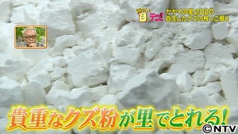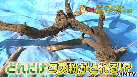 クズ切りの原料になる、クズ粉。でも今、世の中に出回っているクズ切りの多くは、クズ粉ではなく、サツマイモなどのデンプンから作られたもの。その理由は、クズの根は掘るのが大変な上、クズ粉はわずかしか採れないから。だからクズ粉100%のものはかなり高価で、80gでおよそ1000円するものも。そんなクズ粉が、かがくの里でも採れるかもしれないのです!
