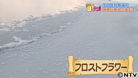 それは!凍った湖面に咲く花、フロストフラワー。フロストフラワーとは、夜から明け方にかけて、雪の積もっていない凍った湖面に、花のような霜が一面に発生する現象。発生条件は、気温がマイナス15℃以下、風がないこと。さらに、日が昇ると気温が高くなり、溶けてしまうため早朝しか見ることができない貴重な現象です。