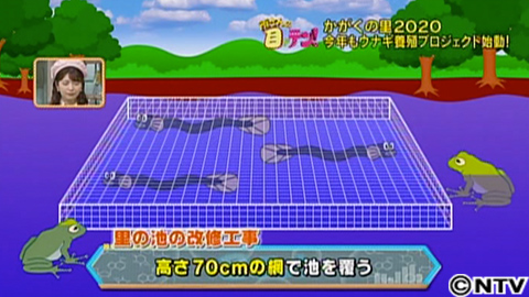 けれど、ウナギの回収率では苦戦して、1年目は100匹中29匹で、およそ3割。2年目のウナギにいたっては、大型台風の影響で、回収率は、ほぼ0%。そこで、なんとか回収率を上げるため、池の改修工事を行うことに。高さ70cmの網で池を覆って、増水でウナギが逃げないようにし、さらに、鳥やカエルから食べられないようにする、一石二鳥の計画。