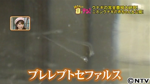 それだけ貴重なニホンウナギの赤ちゃん、なんと井尻先生が、自然界では西マリアナ海嶺でしか見ることができない、貴重なニホンウナギの赤ちゃんを見せてくれました!このときの名前はウナギではなく、「プレレプトセファルス」。