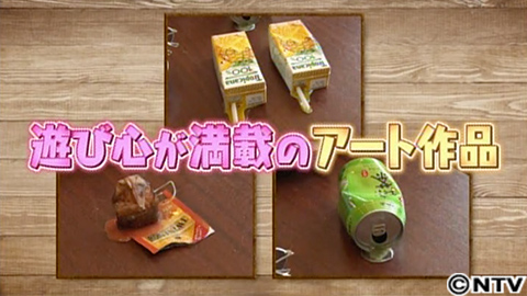 畑仕事を終え、部屋に戻ってきた所さん。あるものを見せてくれました。レジンという、紫外線で固まる樹脂と絵の具をまぜて、飲みっぱなしのジュースを再現したもの。さらに、使ってほったらかしにされたティーバッグ。