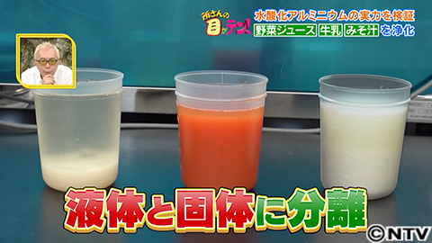 これは、水以外でもできるのでしょうか。川の水よりも透明度がない、牛乳、野菜ジュース、味噌汁で試してみました。
