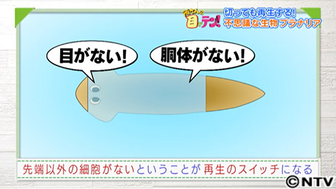 今回の目がテン!は、新企画!生き物や科学に、あまり興味のない都丸紗也華さんに、楽しく自由に学ぶことで科学に興味を持ってもらう「都丸紗也華の自由研究」。第一回目のテーマは…つぶらな瞳が愛くるしい生き物、プラナリア。切っても死なない!?死なないどころか、切った個数に増える!?一体この生き物は何なのか?