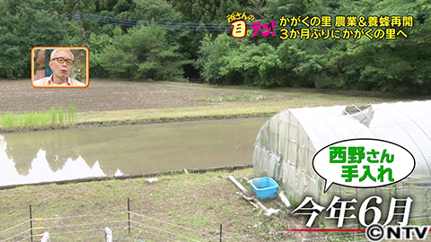 3月29日。この日、関東では季節外れの大雪が降り、かがくの里も真っ白に!雪が舞う中、阿部さんと西野さんは、手すりを増築していました。実はこの日以降、阿部さんは、かがくの里に来られなくなってしまいましたが、それから3か月が過ぎた6月末、阿部さんがかがくの里に戻ってきました。里はどうなっているのか?