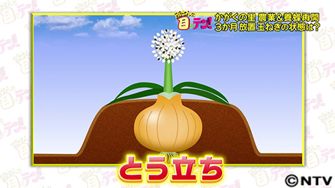 とう立ちしてしまうと、玉ねぎにたっぷり入っていた栄養も、新たに伸ばす茎や花に使ってしまい、味が薄くなっちゃうんです。とはいえ、味は薄くても、上手に料理すれば美味しく食べることもできるそうです。