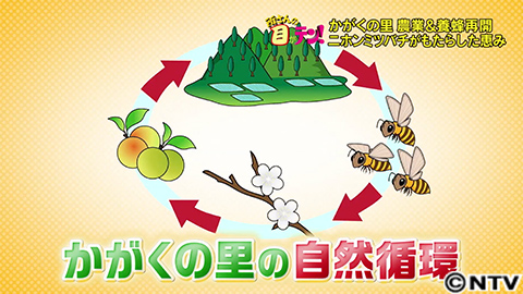 ニホンミツバチが、花も多く、自然環境の良いかがくの里にたくさん集まり、そして、大好きなウメの花粉を運んだことで、ウメの実も、よりたくさん実ったと考えられるんです。まさに、かがくの里で自然循環がおこっているということ!