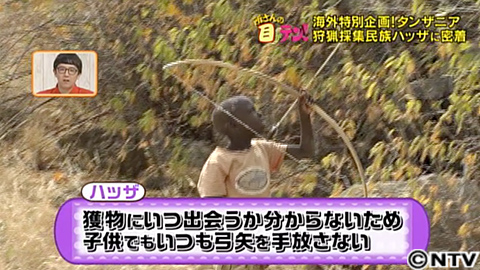 中でも目を見張ったのが、狩猟で一番大切な、弓矢の使い方を教わっている時のこと。なんと、子供が弓を構えています。すると、子供が小鳥を一発で仕留めました。ハッザの狩りは、主に弓矢を使います。獲物にいつ出会うか分からないため、子供でも、いつも弓矢を手放さないそうです。