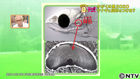 その方法は、“耳石”という、炭酸カルシウムの塊の一部を、薬品で染めるんです。耳石は、魚類では脳や目の近くにあります。