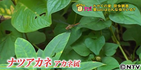 調査開始!早速、私たちが“赤トンボ”と呼ぶトンボの一種“ナツアカネ”が。