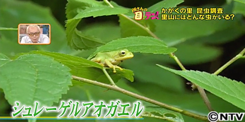 天然記念物になっている、モリアオガエルの仲間だそうです。シュレーゲルアオガエルは田んぼで産卵するため、田んぼと林、どちらも近くにある環境でしか生息できないそうです。