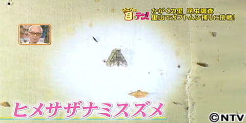 さて、ライトトラップはどうでしょうか?たくさんの虫がいましたが、残念ながら、カブトムシは来ていません。しかし、“ヒメサザナミスズメ”という、自然豊かな山にしかいない蛾を発見できました。
