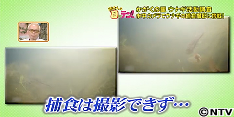 ウナギを池に入れてから1か月後。池の中で、ウナギがどういう行動をしているのか?そして、なにを食べているのか?水中カメラでの撮影に挑むことに。3台のカメラを、ウナギが集まるという池の端に向けて沈め、1台は水路にも入れました。