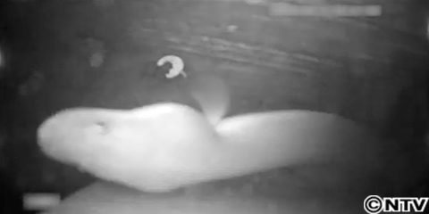 そして、撮影を終えようとしたその時!カメラに巨大なウナギが!!さらに、水路に設置したカメラにも巨大なウナギ!大きさから、去年か一昨年に放したウナギだと思われます。