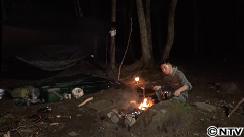 そして、開始から2時間。自然のものを最大限利用した寝床、シェルターが完成!ここで、金丸さんは2泊3日過ごしていきます。
