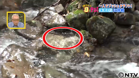 1日釣り券を購入し、釣りを開始。ヤマメやイワナは、餌となる水生昆虫が流れてくるのを待っています。そのため、毛ばりと呼ばれる、昆虫に似せたものを使う、テンカラ釣りで狙います。狙うポイントは、昆虫が留まりやすい、流れが少し弱まった場所。