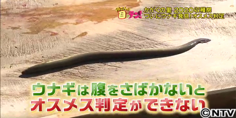 そこで前回、ヌシ捕獲のため、所さんも一緒に皆で池を大捜索!しかし、ヌシどころか、ウナギは1匹も見つからず。収穫祭の前に捕まえていた20匹のウナギはまだ小さく、研究室でないとオスメスの判定ができないとのこと。