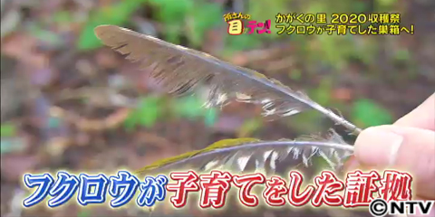 ところが今年、ちょうど巣作りをする時期に自粛となり、巣箱を見に行けず、7月、ようやく巣箱を見に行ってみると、なんとフクロウが来た形跡を見つけていたんです。巣箱を仕掛けた年にフクロウが入るのは、専門家守山先生も驚く、ラッキーな展開!ということで、その巣箱の中身を所さんがチェック。