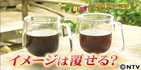 里山の恵み、ドングリコーヒー、所さんは「ポットに入れっぱなしのコーヒー、酸味が急激なものの薄い感じ」との評価でした。