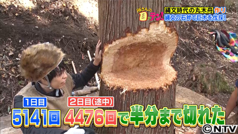 番組では、当時の船を再現するため、縄文人がつかっていた道具、石斧を使って丸木船を作ります!しかし、それはロケ日数18日という当初の予定を遥かに超える大掛かりなプロジェクトに発展。舟を完成させることはできるのか!?今回の目がテンは、人類はこう作った!第2弾!「縄文時代の舟を再現」です!