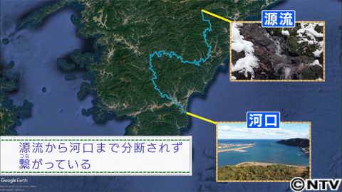 四万十川の水がキレイな理由の一つとして考えられるのが、源流から下流の河口まで、大きなダムがなく川が分断されず、つながっていること。