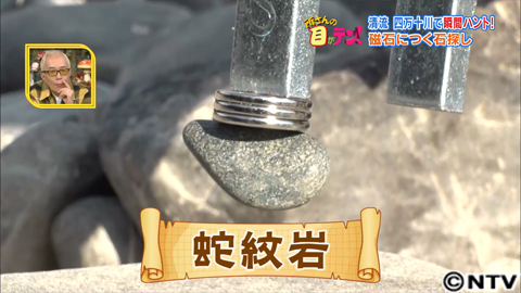 その石は、磁石にくっつく特性を持っているので、金丸さん、磁石を片手にその石を探します。探すこと20分。金丸さん、磁石にくっつく石を発見!