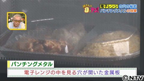 つまり、パンチングメタルの小さな穴なら、マイクロ波をシャットアウトでき、中もちゃんと見ることができます。電子レンジの穴には、奥深い秘密があったんです。