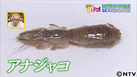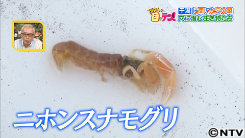 さらに、寒い時期の一番多いという生き物の穴を発見。こちらもヤビーポンプを使って調査。出てきたのは、ニホンスナモグリという生き物。