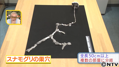 すると、長さ50cm以上!クネクネと折れ曲がり、いくつもの部屋に分かれた巣穴なのが分かります。