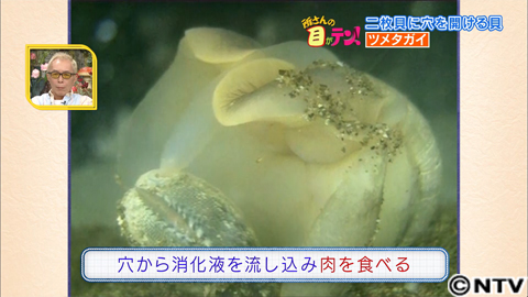 穴が空いたら消化液を流し込み、アサリの肉をチューチューするというわけです。