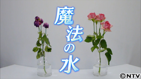 2つの花瓶に入った、バラの切り花。花瓶に入っているのは、一方がただの水、もう一方が花を長持ちさせる「あるもの」を混ぜた水です。水以外は同じ条件で、バラを放置すると、ただの水に入れたバラは、みるみるうちに萎れていき、たった3日でしぼんでしまったのに対し、「あるもの」を混ぜた水の方は、6日、7日としおれずに咲き続けたんです!この魔法の水の正体とは?
