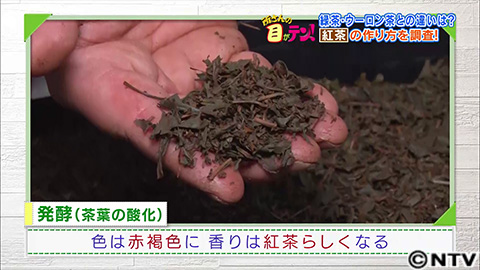 緑茶は、摘んだ茶葉にすぐ熱を加え、酸化酵素の働きを止める「非発酵茶」、ウーロン茶は、途中まで発酵させてから熱を加え、酸化酵素の働きを止める「半発酵茶」、紅茶は、完全に酸化酵素の働きを引き出し、独特の香りと色合いを生み出す「発酵茶」だったんです!