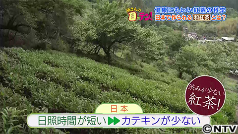 さらに、紅茶の代表的な産地・インドやスリランカは熱帯地方の直射日光を浴びる過程で、カテキンが多く生成されます。一方、日本では、比較的日照時間が短いため、カテキンが少なく、より渋みが少ない紅茶になっていたんです。