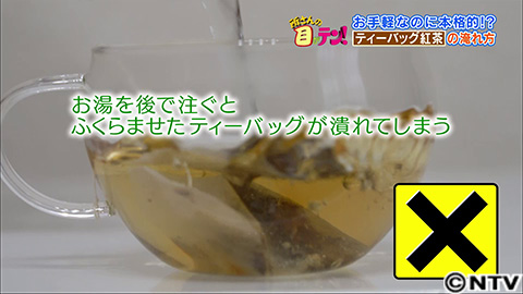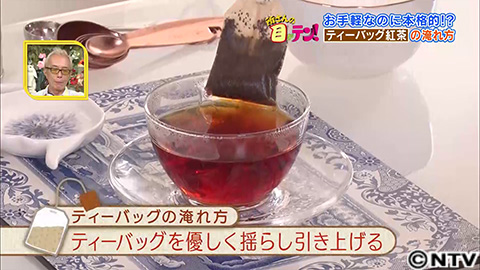 でも、おうちで毎回この手順を踏むのは大変。そこで先生がオススメするのが、お手軽なティーバッグ!ティーバッグを使って、おうちで手軽に本格的な紅茶を淹れられるというんです。それでは、先生にお手本を見せてもらいます。