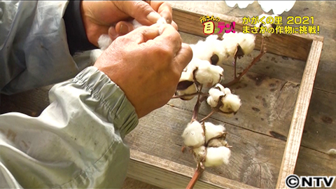 それは、ワタ。ワタはアオイ科ワタ属という植物で、綿製品の原料。明治時代までは、日本でも栽培されていましたが、現在はほぼ全てを輸入に頼っています。西野さんが用意したのは、繊維がとれるワタの実の部分、綿花。実はこの綿花の中に、ワタの種があるんです。