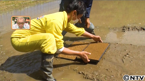 さっそく西野さんが取り掛かったのは、種もみの芽出し!種もみは水につけることで細胞分裂が始まり、芽が出る準備が整うんです!早く芽を出すには、少し水温が高い方がいいそうなので、翌日、太陽熱でちょっと温まった温水を使います。そして、4日目。種をまく準備が整いました!