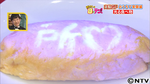 用意したのは、所さんのために、特製のオムライス。所さんに真心を込めたメッセージ付きとのことですが、なにもメッセージが見せません。しかし、そこに不思議なライトの光を当てると、なんと所♡の文字が!