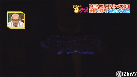 チャレンジしたのは、生き物大好き、桝太一アナ。用意したのは、なんの変哲も無い少し水の入ったペットボトル。このペットボトル、振って暗くすると、なんと光っています。