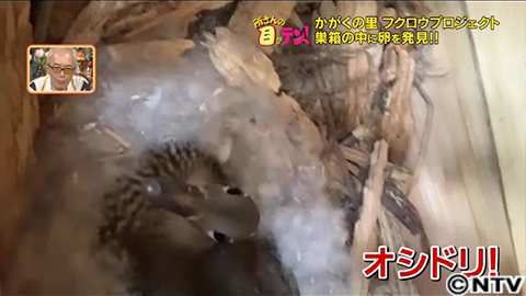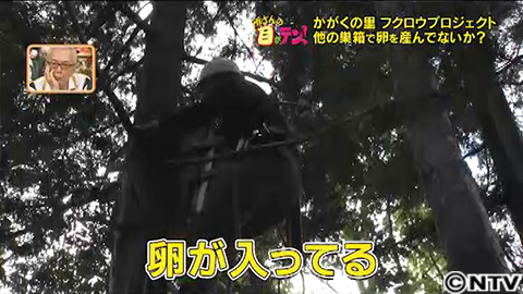 里山再生の一環として、2年前から始めたのが、かがくの里にフクロウを呼ぼうプロジェクト。森の生態系の頂点にいるフクロウが減ると、エサとなるネズミなどが増えてしまい里山全体の生態系のバランスが崩れてしまうといいます。そこでフクロウにすみついてもらうため、巣箱を裏山に設置。定点カメラを仕掛けたところ、ついにフクロウの姿をカメラに収めることに成功!そして今回、ついに!巣箱の中に卵があった!?