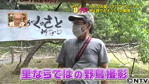 6月中旬。オシドリ観察に気合十分の阿部さんは野鳥撮影のプロをお呼びしました。野鳥撮影40年!茨城県在住の写真家 小曽納久男さんとアシスタントの宮本さん。小曽納さんのライフワークは、水戸市を中心に行っているハクチョウの撮影。着水のシーンや飛び立つ瞬間を何時間もかけシャッターチャンスを待つそうです。