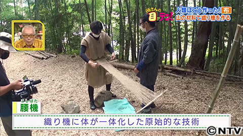 石田さんが行ったのは、織り機と体とが一体化している、腰機と呼ばれる原始的な織物テクニック。実際、旧石器時代の人類がどのように布を織っていたのかはまだわかっていません。