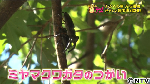 一同はまず畑エリアへ。今年の夏、東京バグボーイズの二人は裏山にライトトラップを仕掛けたところ、ノコギリクワガタのメスの他、ミヤマクワガタのオスの撮影にも成功!ミヤマは深い山と書き、普段は山深いところにいるクワガタ。しかし、後日、小屋のすぐ近くで撮影していたら、ミヤマクワガタがつがいでいるところを発見。