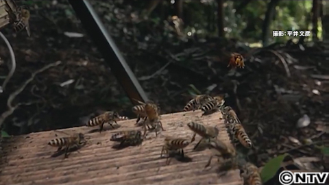 続いては、ニホンミツバチエリアへ。ここでも平井さんが貴重な映像を捉えていました。ここからはハチの専門家小野先生もとともに映像をチェック!