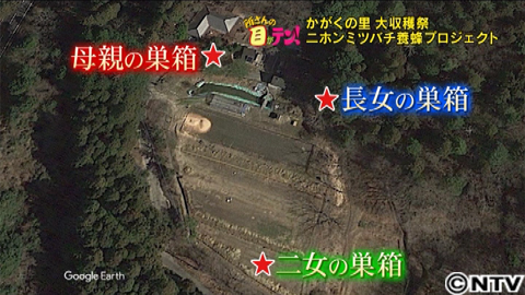 分蜂した二つの群れは、里の達人西野さんの力も借り、新しい巣箱へ移すと見事に定着し、せっせと蜜を集めるようになりました。つまり、里の巣箱は、お母さん女王の巣箱、長女女王の巣箱、二女女王の巣箱と、全部で3群に!