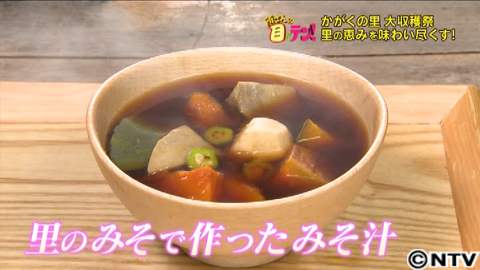 里米のお味に、所さんも「うまい」と絶賛!そして里の味噌で作った里芋とカボチャのお味噌汁にも大満足!