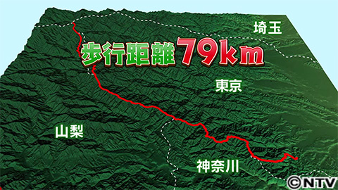 10月下旬、縦走1日目。今回、金丸さんが縦走するルートですが、高尾山登山口からスタートし、西側の都県境にある東京の山を縦走しながら、東京都最高峰、2017mの雲取山まで歩きます!距離は、およそ79km。1週間かけて、縦走しながら、貴重な瞬間を探します!今回は安全のため、登山ガイドの宮津さんにも同行してもらいます!