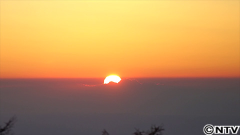 翌日。山頂を目指すこと、40分。お目当ての貴重な瞬間が近づいてきました。雲の切れ間から、ゆっくりと太陽が上がってきます。日の光に照らされ、富士山も赤く染まっています。縦走の最終日に美しい瞬間をハントした金丸さん。見事、縦走をやり遂げ、貴重な瞬間をハントできました。